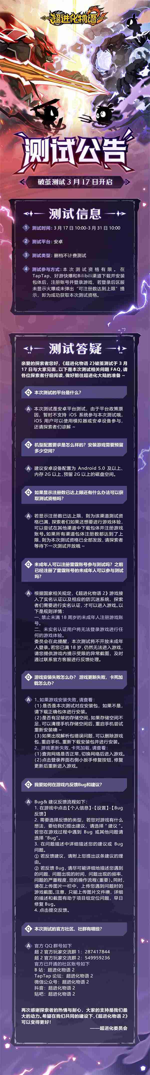 《超进化物语2》首次限号不计费删档测试——「破茧测试」将于3月17日开启,,,,随我们确认测试细节,,,明天迈出踏上超进化大陆的第一步吧!!!